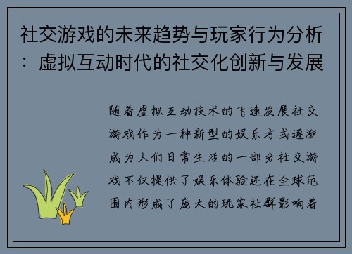 展望未来,至尊国际官网将继续加大研发投入,推动技术创新,拓展全球市场,致力于成为全球领先的数字娱乐企业,向着“创造更多奇迹”的目标不断前行。